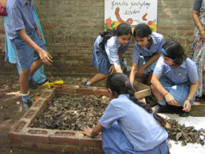 Composter worms are introduced and a talk on vermi-composting is given to the students.