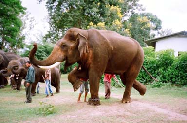 forehead with a sharp edged stick by their “trainers”. Quite a few elephants