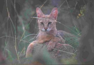 spanning from Egypt to Vietnam , very little is known about this cat. They probably do us a great favor by keeping rodent numbers low in crop fields since my study showed that each jungle cat in Sariska ate around 1500 rodents per year! The least we can do