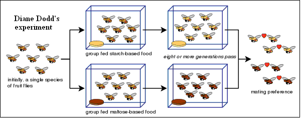 The biologist Diane Dodd was able to show that only 8 generations of dietary separation can
