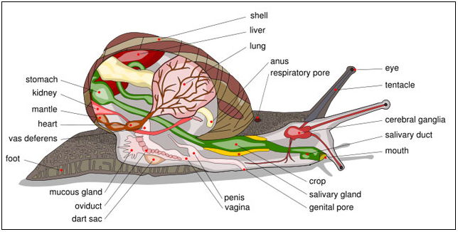 unless we say it has its skeleton on the outside! Many of the snails organs are within the