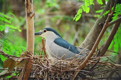 Many wading birds and water fowl like ergets, herons and ibises nest in wetlands.