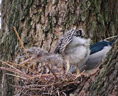 Like all herons these birds also colonize favourite roosting spots, on large leafy trees quite far from their regular lakes or ponds.