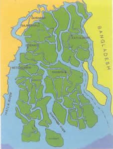 The Sunderbans get their name from sundari trees once found in abundance in this area. In April and May the flaming red leaves of genwa trees edge the emerald island. The crab like red flowers of the kankara and yellow blooms
