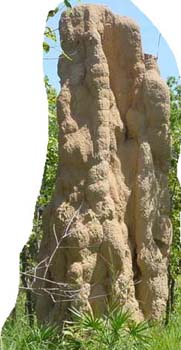 They do it by venting breezes in at the base of the mound, down into chambers cooled by wet mud carried up from water tables far below, and up through a flue to the peak. Toiling with the tireless, compulsive work ethic of all ants,