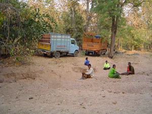 We moved through the forest towards Udhampur to reach the machaan. On our way we came across a dried forest stream. There were some people sitting on the riverbed. We wondered who they were. On closer examination we found them