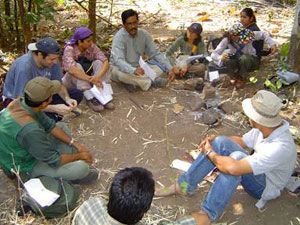 machine, drilling a bore well. Some people were gathered around that place. One of them was the chairperson of the local Vana Samrakshana Samiti.