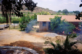We seemed like aliens getting off this “Oh, so poor looking vehicle” in the posh environs of the Lodge. “Posh”, I would say, because actually I expected something like tents or bamboo huts for accommodation inside a deep, deep jungle. The hills around the Lodge were absolutely bare except for a shrub here and there. And the lodge itself was made of steel and concrete, albeit in a cottage style – there were twelve in all, well furnished complete with granite topped wash rooms,12 cottages complete with granite topped wash areas, a generator to back-up for electricity, electric geysers (of course, most of the time, there was a power shut down, so the smoke spewing, noisy generator had to be kept active).