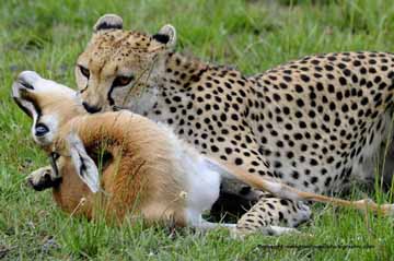 The cheetah is specialized to prey on the fastest antelopes, especially gazelles. No other mammal is as fast as the cheetah, which has a top speed of 90-112 kph. Unfortunately its speed is not matched by stamina. To capture its prey the cheetah has to overtake