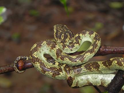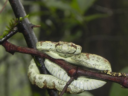 Malabar pit viper resting on a plant during one of our trails in Amboli