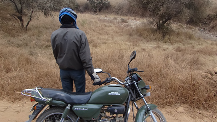 A forest guard on the look out for tigers in the scrub jungle of Sariska
