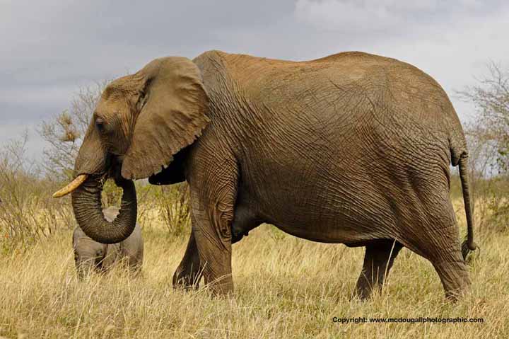 The African Elephant is larger and has bigger ears than its Asian relative. Elephants can survive in virtually any habitat and are widespread throughout Kenya. Elephants are social animals and have a matriarchal society with herds of related females. Males