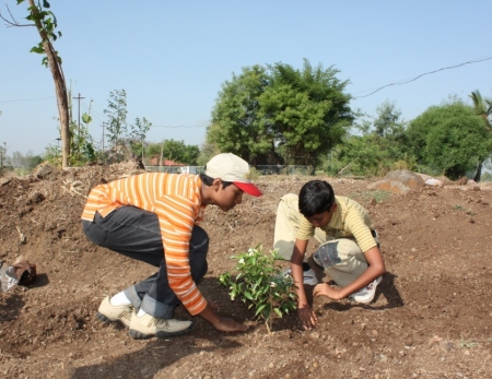 plant three small-statured trees which would highlight the mandir’s background. We chose well-developed saplings for plantation which were sturdy enough to survive (unintentional) neglect and which already had some flowers so as to enthuse the children and