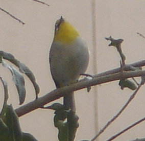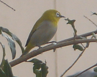 A sparrow sized greenish yellow bird, hopping endlessly from branch to branch in garden trees, chirping occasionally a faint Ckik.....chik...with a conspicuous white ring around the eye is the White eye. It has a small curved bill which looks almost translucent when seen against the sun.